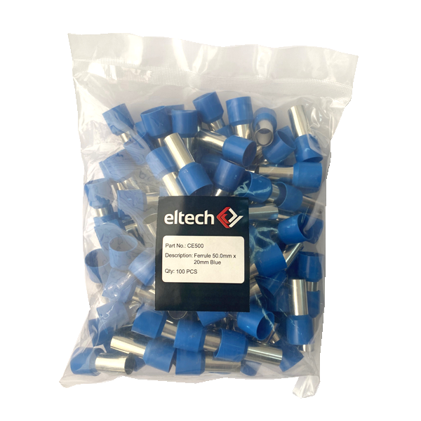 Home / Shop / Cables and Installation / Lugs and Ferrules / Cord End Ferrules / Single - Pack / Single Cord End Ferrule 50mm x 20mm Blue