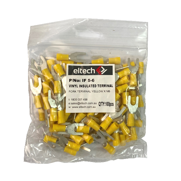 Home / Shop / Cables and Installation / Lugs and Ferrules / Pre-Insulated Terminals / Fork Terminals / Single / Pre-Insulated Fork Terminal – Single – Yellow M6